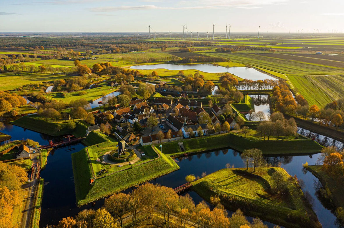 Ẩn mình gần biên giới Đức, ngôi làng Bourtange là một trong những điểm đến đặc biệt nhất tại Hà Lan. Bourtange được xây dựng vào năm 1593, trong bối cảnh cuộc chiến kéo dài giữa người Hà Lan và Tây Ban Nha.